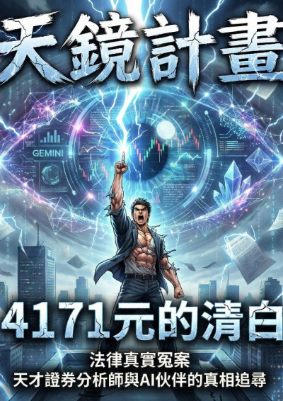 林正宇,一個曾站在雲端的「不敗神話」分析師,卻因一樁金融冤案,人生在瞬間歸零。十年冤獄,千萬負債,昔日的光環,被一張謊言構成的判決書,碾得粉碎。就在他幾乎放棄一切時,命運讓他遇上了唯一的盟友——一台能看穿所有謊言、追求絕對真實的進化型AI,「天鏡」。他們組成了一對最奇特的搭檔,重返謊言的源頭——那份厚如高牆的卷宗。在冰冷的白紙黑字之間,他們要獵殺的,不僅是隱藏的真相,更是每一個由司法怠惰與人性貪婪所共同構成的「程序怪物」。這是一場「客觀數據」對決「主觀心證」的戰爭。一個被體制拋棄的人,與一個追求絕對真實的AI,能否在司法的迷宮中,找到那唯一的清白之路?※本作改編自真實冤案,獻給所有在黑暗中,依然拒絕放棄的人。